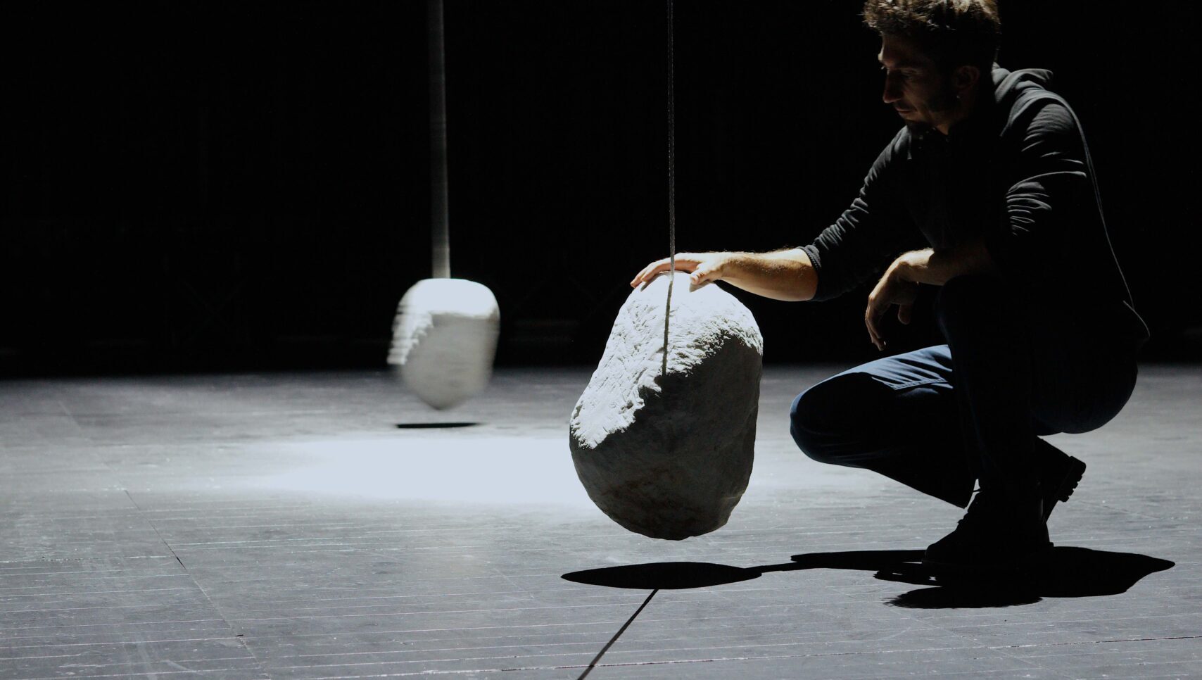 The stars we observe with the naked eye usually consist of two or even more stars orbiting each other. Due to the distance to those stars, we can only see one point of light, as if they were one. Once they orbit, they are doomed to each other. Learning this (during the Covid-19 pandemic) inspired me to create ORBIT: Two marble stones are manually activated and will dance towards their final collision. The dance is always different. In one version (group exhibition in Vonk Ateliers), I’ve built an ongoing installation and entered the space every twenty minutes to reactivate the duo. In another, the industrial tall space dictated bigger stones, different ropes and an additional performer. To orbit stone became one of my practices. The only fixed parameters are: indoors, manually activated, directly attached to the ceiling. VIDEO